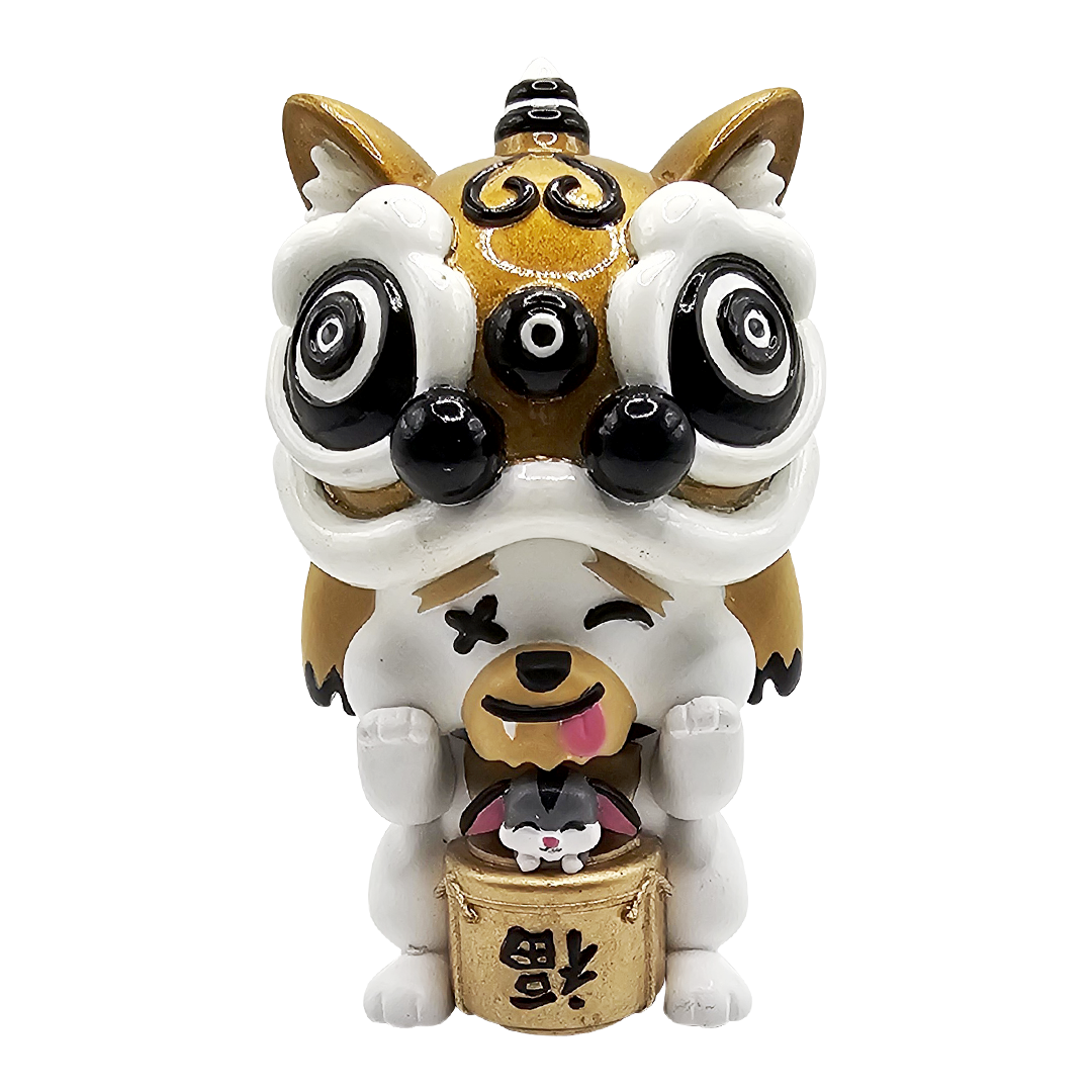 Inu-man was inspired by the artist's shih tzu who had an accident that caused him to lose an eye. After his surgery he looked like a drunk dog. Inu-man celebrates his strength, sweetness, and mischeviousness thru art.